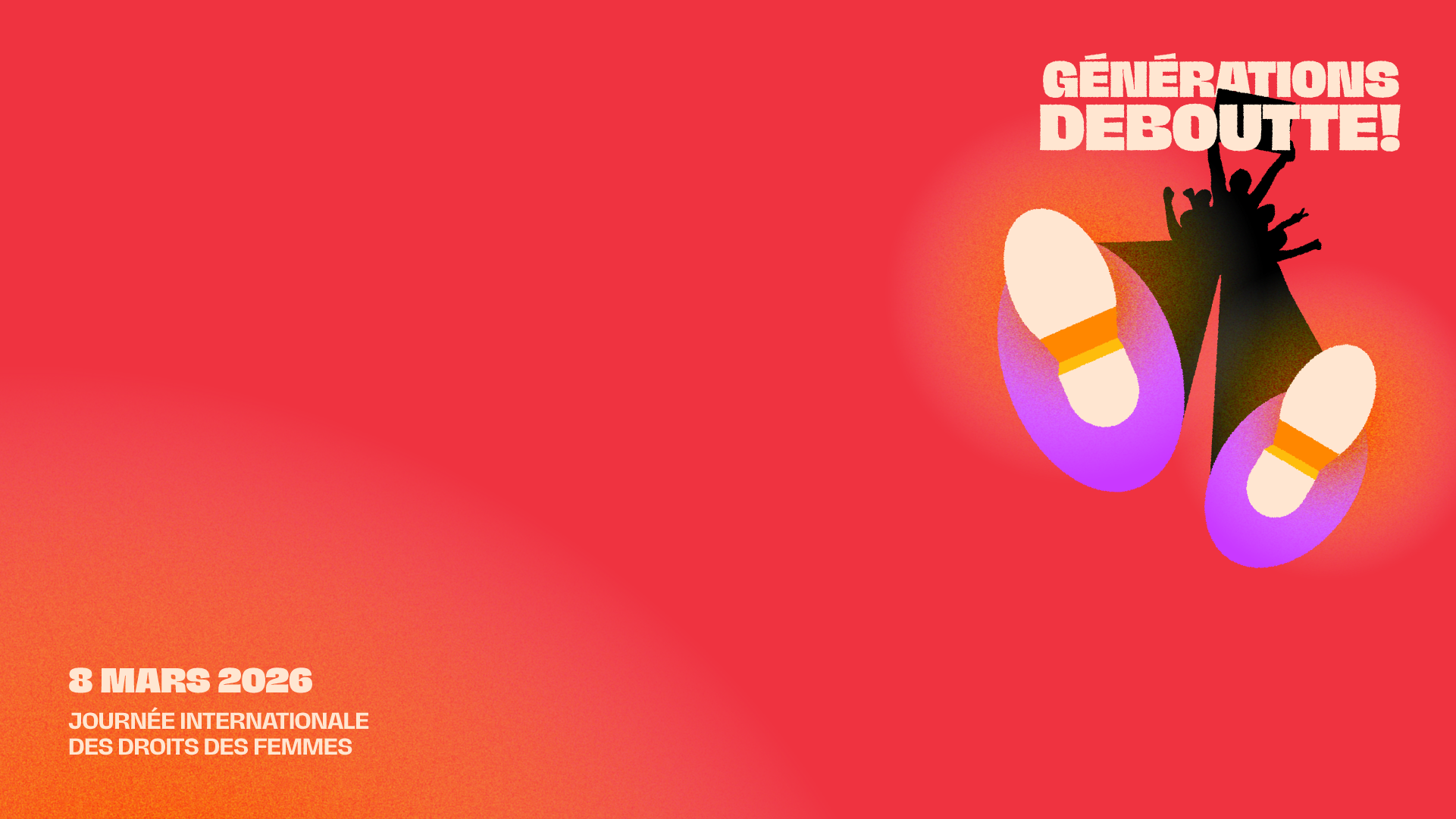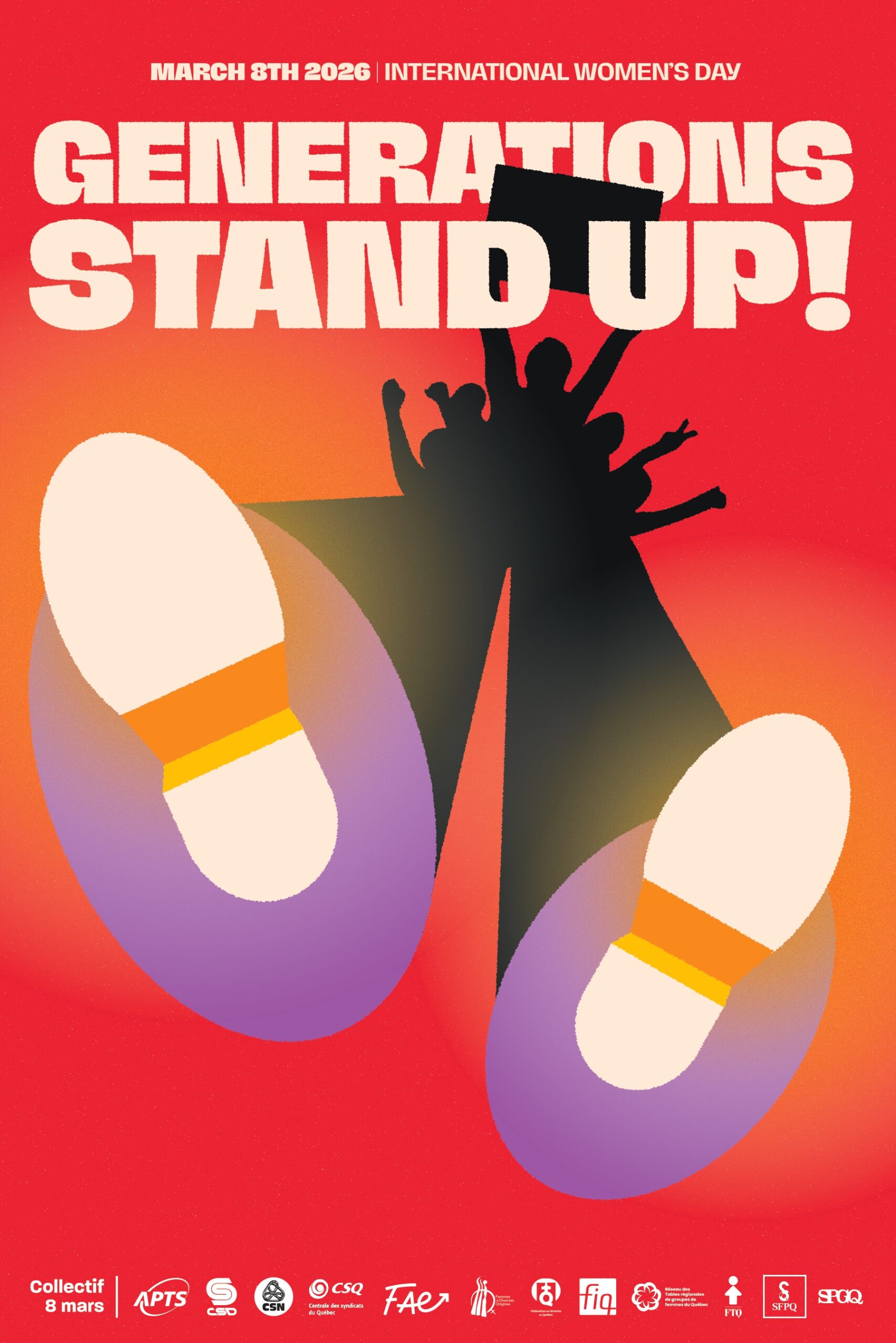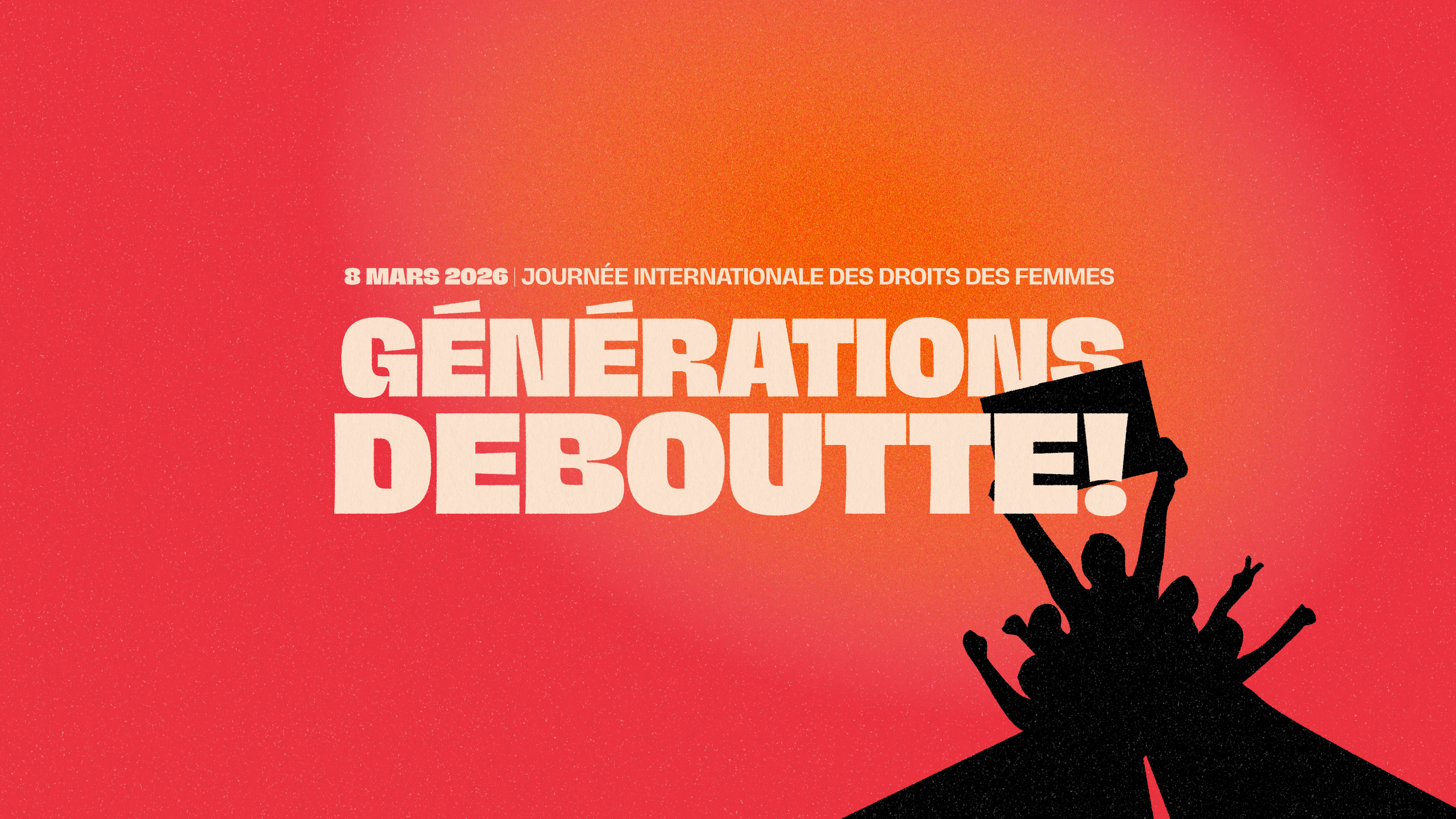 Aujourd’hui encore, les forces économiques, politiques et sociales divisent, oppressent, et cherchent à restreindre nos droits, à freiner nos avancées, à semer la peur et la haine. D’une génération à l’autre, nos appels se répondent, nos luttes s’entrelacent et nos victoires se tissent ensemble vers l’égalité. Le féminisme se renouvelle, s’enracine et se nourrit de la diversité. Pour contrer ces courants réactionnaires, allons puiser dans nos forces féministes vivantes, solidaires et multiples. Reprenons cet élan, ne tolérons aucun recul : Générations deboutte!